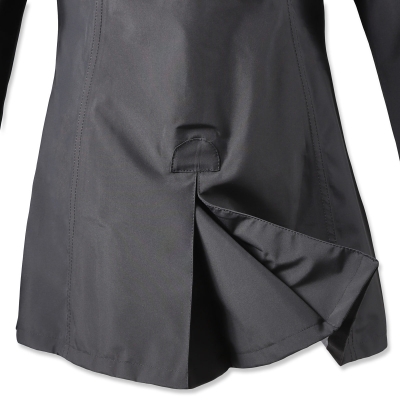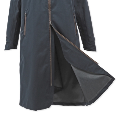 一見すると、一般的なレインコートと比べてそれほど変わっている様子が分かりにくいのですが、よく見てみると細かいポイントがライダーに優しい便利な構造になっています。カサカサ音がしにくい素材で、音に敏感な馬にも優しい