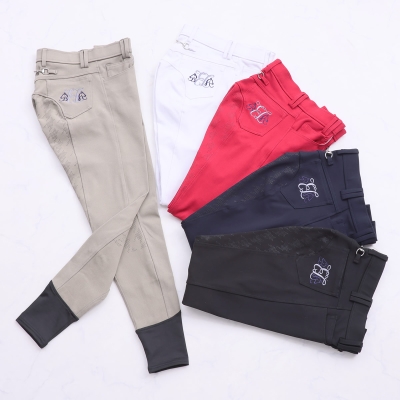 最近は使い勝手の良い新型のシリコングリップタイプが主流になってきていますが、従来の尻革タイプを選ばれる方もまだまだいらっしゃいます。丈夫で生地の厚い独特の感触や、まさしく「乗馬パンツ」という見た目がお好みの方におすすめのアイテムです。